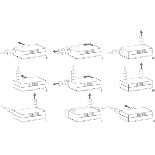- verschiedene Anschlussmöglichkeiten für Außen- und Fortluft, je nach Installationssituation