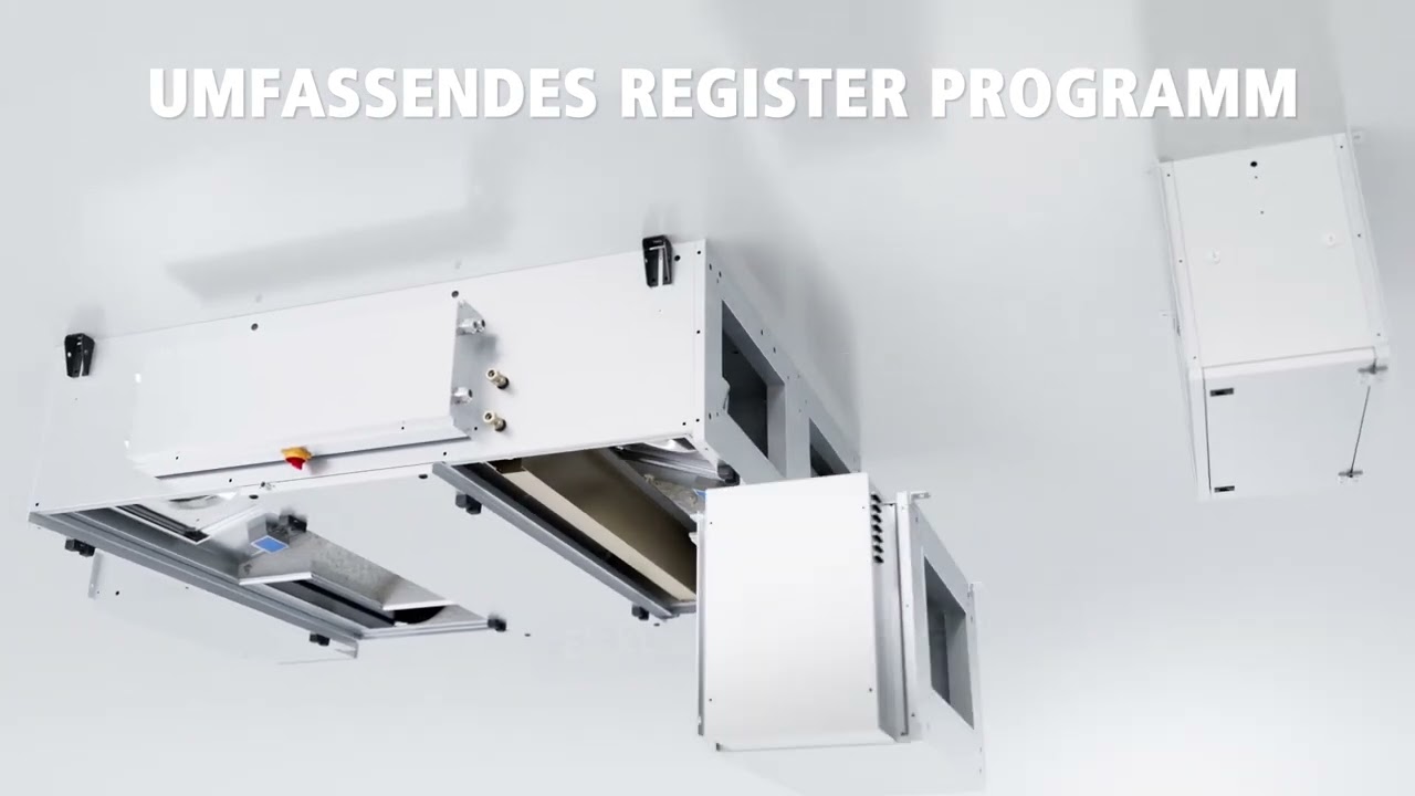Es stehen 6 Gerätegrößen mit einer Luftmenge von bis zu 3.280 m³/h (ErP18) zur Verfügung. Ein integriertes Wassernachheizregister (HW), ein im Kanal vorgeschaltetes elektrisches Vorheizregister (PHE - nur bei sehr kalten Außentemperaturen < -16°C erforderlich), ein im Kanal nachgeschaltetes E-Heizregister (HE), ein ebenfalls im Kanal zu platzierendes Change-Over-Register zum Heizen und/oder Kühlen oder sogar eine 2. Filterstufe zum Kanaleinbau komplettieren das breite Zubehörsortiment zur optimalen Luftkonditionierung.