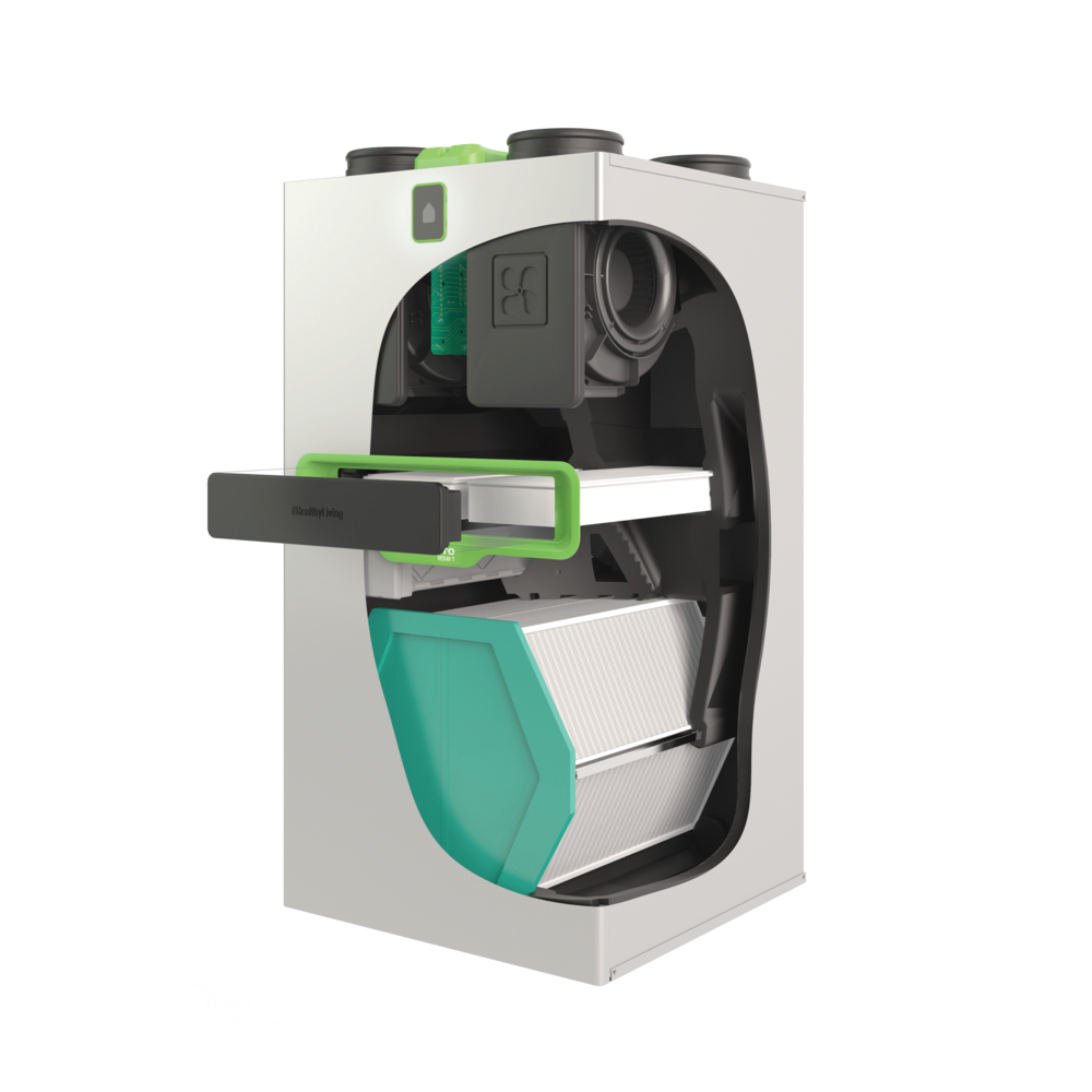 Bei der Verwendung der Geräte aus der InspirAIR®-Serie brauchen Sie dennoch nicht auf eine energieeffiziente Wärmerückgewinnung zu verzichten. Die Geräte sind mit einem Hochleistungswärmetauscher ausgestattet und decken einen Luftmengenbereich bis zu 450 m³/h ab.