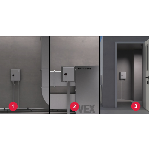 Die Wahl von EXcon+ bietet neben einer breiten Palette von Standardsteuerungsmodi die Möglichkeit, EXHAUSTOs patentierte Automatische Leckagekontrolle (ALC™) und Dynamische Druckkontrolle (aDCV) zu nutzen.