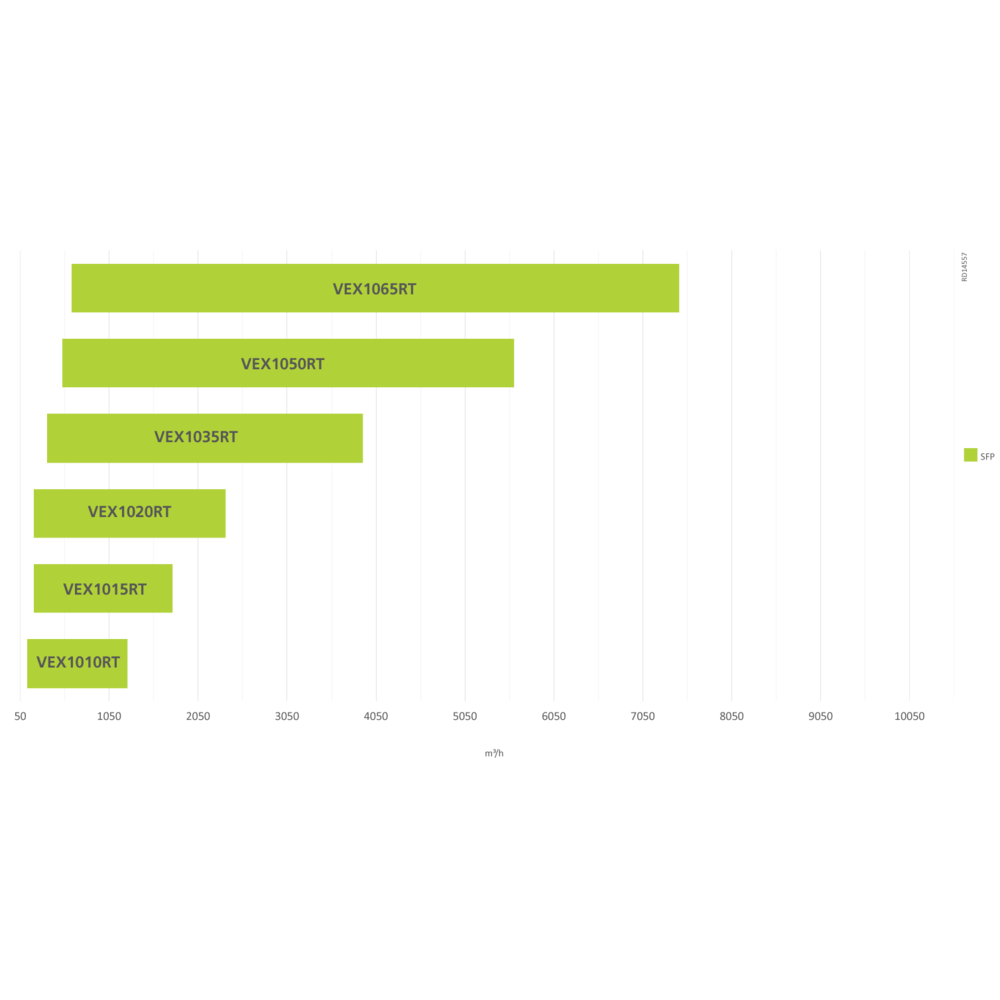 Die VEX1000RT-Modelle sind optimiert, um die höchstmögliche Luftkapazität bei minimalem Platzbedarf zu liefern. Alle Modelle passen durch eine Standardtür von 90 cm. Wenn die Zugangsbedingungen besonders eingeschränkt sind, kann das Produkt als SPLIT geliefert werden, wobei das Lüftungsgerät vor Ort demontiert und nach der Einbringung zum Aufstellort wieder zusammengesetzt wird.