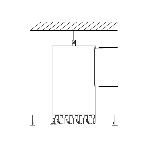 Der Schlitzdurchlass ist für die Deckenmontage vorgesehen, kann aber auch als Wanddurchlass (gilt nicht für LINED® Combined TP) verwendet werden. Bei der Installation an der Wand sollte darauf geachtet werden, dass der Abstand von maximal 30 cm von der Decke bis zur Oberkante des Schlitzdurchlasses eingehalten wird. Andernfalls kann der Coanda-Effekt nicht erzielt werden.