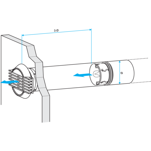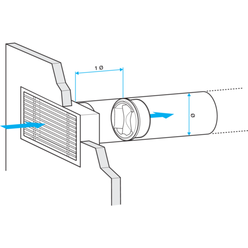 - bei der Anwendung für die Abluft wird ein Abstand von 1Ø zwischen dem Endelement (Gitter/Auslass) und MR Mono empfohlen